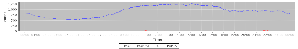 Host zm02.stanford.edu: Mailboxd: Active Connections by Client Protocol