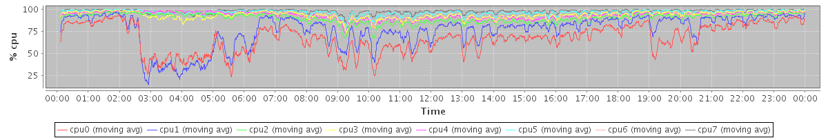avg(cpu0) = 1.40 avg(cpu1) = 1.32 avg(cpu2) = 0.87 avg(cpu3) = 0.69 avg(cpu4) = 0.67 avg(cpu5) = 0.45 avg(cpu6) = 0.73 avg(cpu7) = 0.36