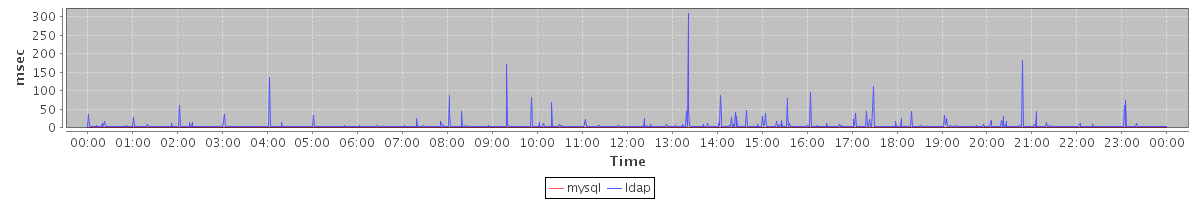 avg(mysql) = 0.24 avg(ldap) = 5.17