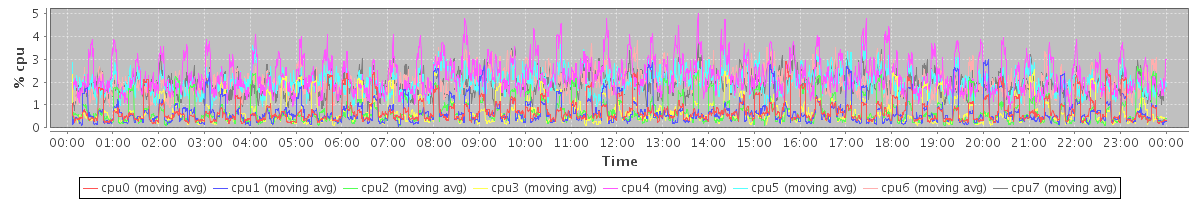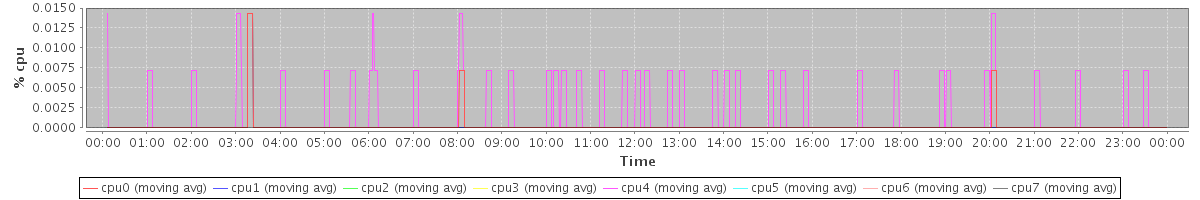 avg(cpu0) = 0.05 avg(cpu1) = 0.10 avg(cpu2) = 0.05 avg(cpu3) = 0.05 avg(cpu4) = 0.01 avg(cpu5) = 0.01 avg(cpu6) = 0.01 avg(cpu7) = 0.00