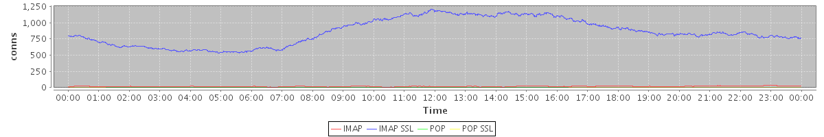 Host zm02.stanford.edu: Mailboxd: Active Connections by Client Protocol