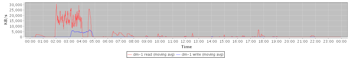 avg(dm-1 read) = 33.12 avg(dm-1 write) = 2.13