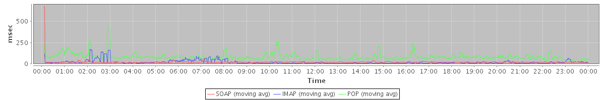 avg(IMAP) = 18.66 avg(IMAP SSL) = 742.84 avg(POP) = 0.02 avg(POP SSL) = 2.35