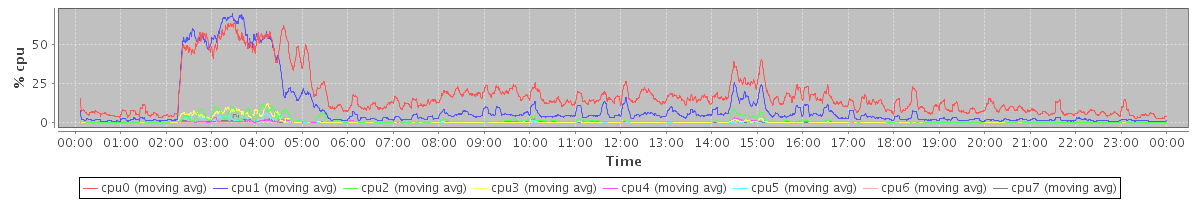 avg(cpu0) = 1.11 avg(cpu1) = 0.91 avg(cpu2) = 0.88 avg(cpu3) = 0.41 avg(cpu4) = 0.54 avg(cpu5) = 0.28 avg(cpu6) = 0.35 avg(cpu7) = 0.22