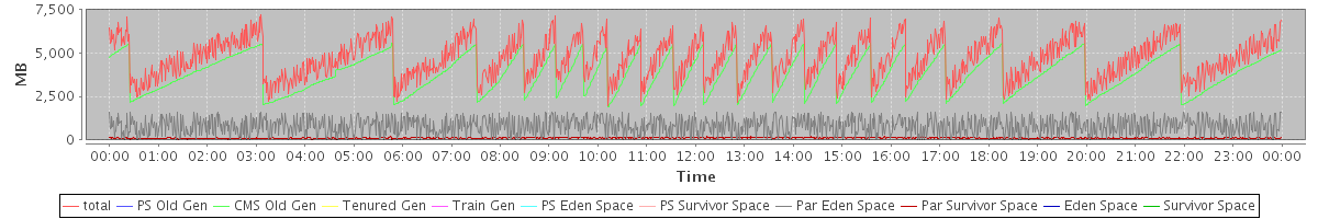 avg(total free) = 3116.95 avg(PS Old Gen free) = 0.00 avg(CMS Old Gen free) = 2227.73 avg(Tenured Gen free) = 0.00 avg(Train Gen free) = 0.00 avg(PS Eden Space free) = 0.00 avg(PS Survivor Space free) = 0.00 avg(Par Eden Space free) = 797.56 avg(Par Survivor Space free) = 91.65 avg(Eden Space free) = 0.00 avg(Survivor Space free) = 0.00