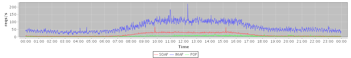 Host zm07.stanford.edu: Mailboxd: Request Rate by Client Protocol