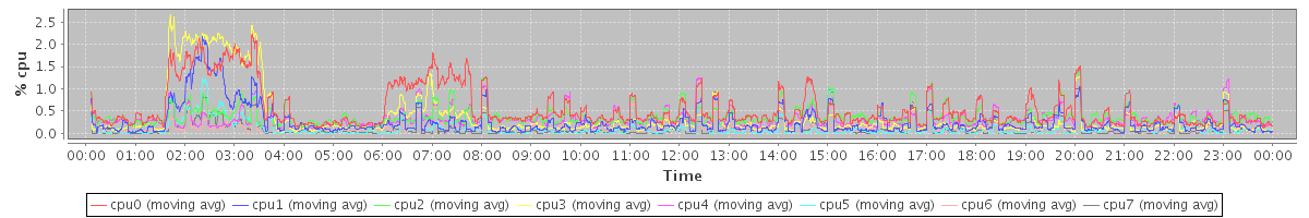avg(cpu0) = 0.14 avg(cpu1) = 0.01 avg(cpu2) = 0.08 avg(cpu3) = 0.03 avg(cpu4) = 0.08 avg(cpu5) = 0.01 avg(cpu6) = 0.02 avg(cpu7) = 0.00