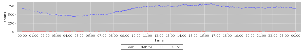 Host zm03.stanford.edu: Mailboxd: Active Connections by Client Protocol