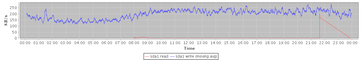 avg(sda1 read) = 0.15 avg(sda1 write) = 196.55
