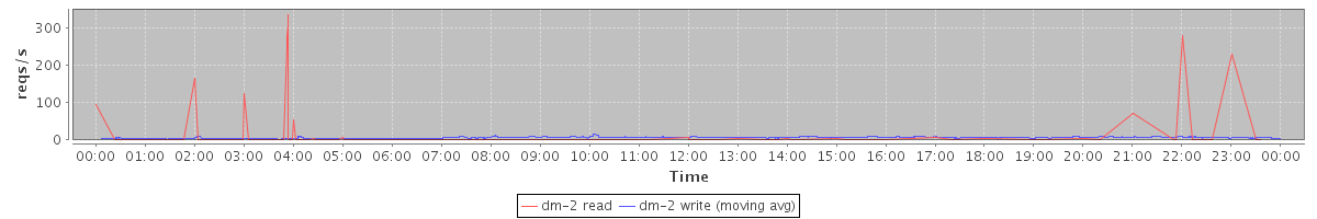 avg(dm-2 read) = 0.88 avg(dm-2 write) = 6.05