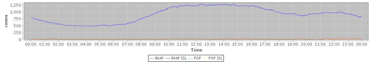Host zm02.stanford.edu: Mailboxd: Active Connections by Client Protocol