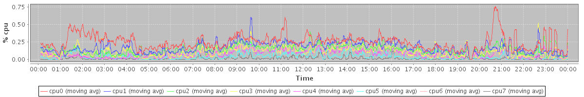 avg(cpu0) = 0.25 avg(cpu1) = 0.17 avg(cpu2) = 0.14 avg(cpu3) = 0.11 avg(cpu4) = 0.08 avg(cpu5) = 0.04 avg(cpu6) = 0.10 avg(cpu7) = 0.01