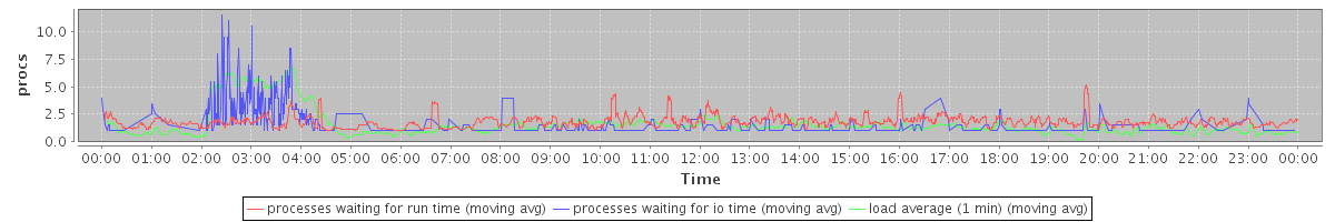 avg(processes waiting for run time) = 1.07 avg(processes waiting for io time) = 0.47 avg(load average (1 min)) = 1.59
