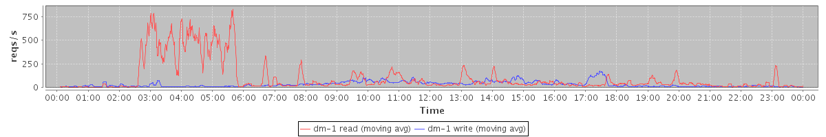 avg(dm-1 read) = 1495.05 avg(dm-1 write) = 474.61