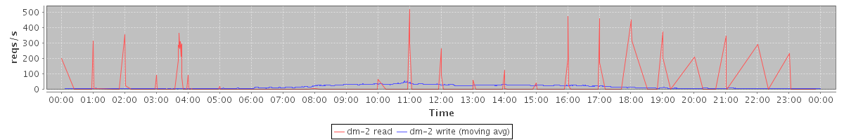 avg(dm-2 read) = 3.84 avg(dm-2 write) = 16.19