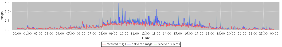 avg(received msgs) = 0.84 avg(delivered msgs) = 1.05 avg(received x rcpts) = 1.05