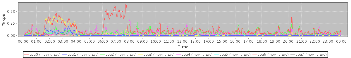 avg(cpu0) = 0.12 avg(cpu1) = 0.01 avg(cpu2) = 0.06 avg(cpu3) = 0.03 avg(cpu4) = 0.05 avg(cpu5) = 0.01 avg(cpu6) = 0.01 avg(cpu7) = 0.00