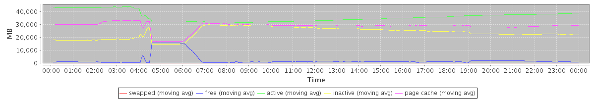 avg(swapped) = 11.51 avg(free) = 2356.32 avg(active) = 36055.29 avg(inactive) = 23629.19 avg(page cache) = 28572.16