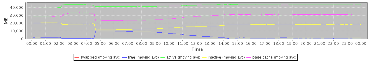 avg(swapped) = 11.51 avg(free) = 3458.91 avg(active) = 42432.18 avg(inactive) = 16636.01 avg(page cache) = 28783.29