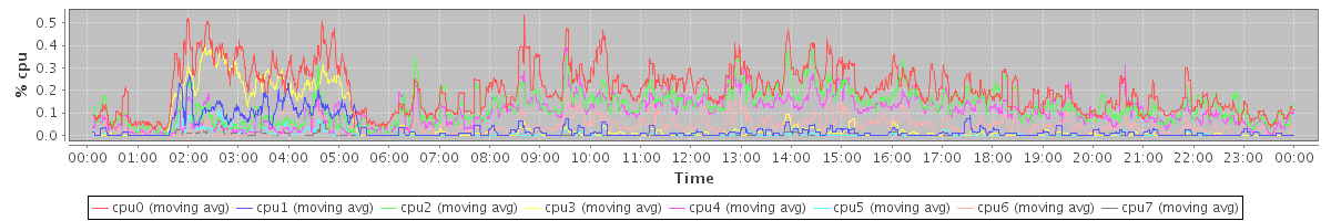 avg(cpu0) = 0.09 avg(cpu1) = 0.15 avg(cpu2) = 0.02 avg(cpu3) = 0.05 avg(cpu4) = 0.03 avg(cpu5) = 0.02 avg(cpu6) = 0.03 avg(cpu7) = 0.02