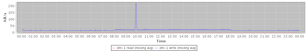 avg(dm-1 read) = 0.02 avg(dm-1 write) = 19.19