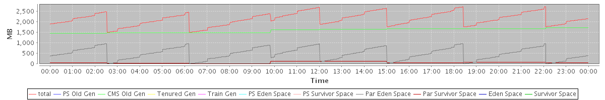 avg(total) = 2131.00 avg(PS Old Gen) = 0.00 avg(CMS Old Gen) = 1588.00 avg(Tenured Gen) = 0.00 avg(Train Gen) = 0.00 avg(PS Eden Space) = 0.00 avg(PS Survivor Space) = 0.00 avg(Par Eden Space) = 481.61 avg(Par Survivor Space) = 61.39 avg(Eden Space) = 0.00 avg(Survivor Space) = 0.00