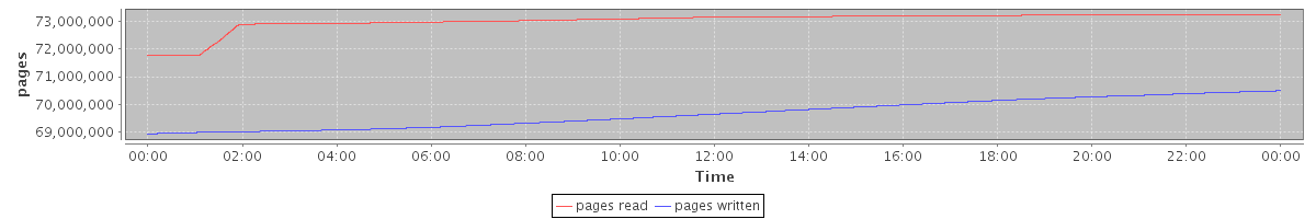 avg(pages read) = 73020954.28 avg(pages written) = 69667146.33