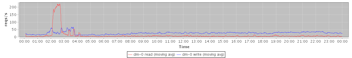 avg(dm-0 read) = 11.97 avg(dm-0 write) = 26.58