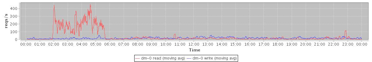 avg(dm-1 read) = 2133.81 avg(dm-1 write) = 371.44