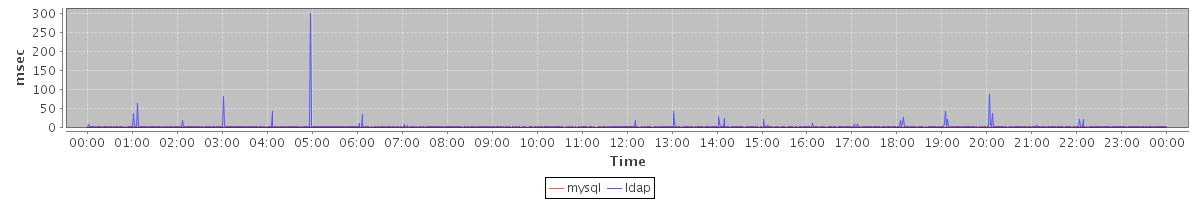 avg(mysql) = 0.14 avg(ldap) = 3.02