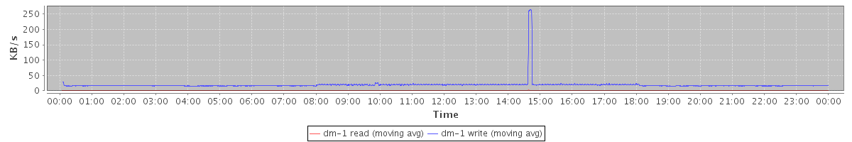 avg(dm-1 read) = 0.02 avg(dm-1 write) = 18.93