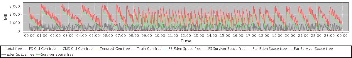 avg(total free) = 1787.58 avg(PS Old Gen free) = 0.00 avg(CMS Old Gen free) = 1257.53 avg(Tenured Gen free) = 0.00 avg(Train Gen free) = 0.00 avg(PS Eden Space free) = 0.00 avg(PS Survivor Space free) = 0.00 avg(Par Eden Space free) = 475.08 avg(Par Survivor Space free) = 54.96 avg(Eden Space free) = 0.00 avg(Survivor Space free) = 0.00