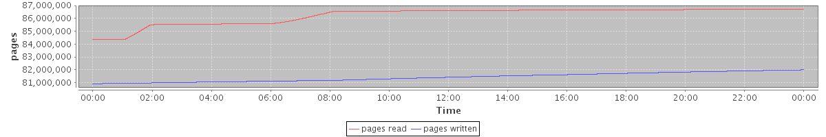 avg(pages read) = 86234463.31 avg(pages written) = 81423268.36