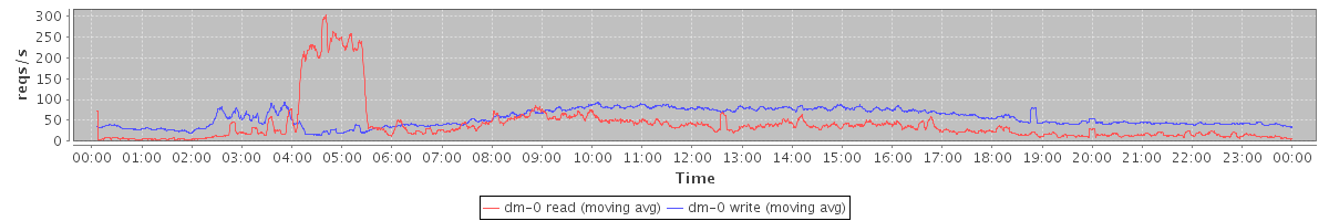 avg(dm-1 read) = 136.17 avg(dm-1 write) = 385.76