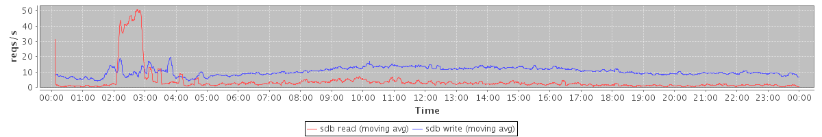 avg(sdb read) = 4.08 avg(sdb write) = 10.45