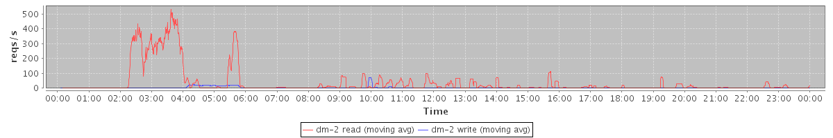 avg(dm-2 read) = 1727.31 avg(dm-2 write) = 466.93