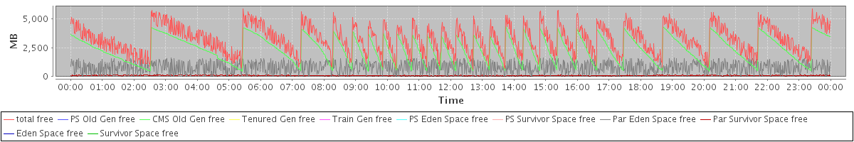 avg(total free) = 3230.84 avg(PS Old Gen free) = 0.00 avg(CMS Old Gen free) = 2347.70 avg(Tenured Gen free) = 0.00 avg(Train Gen free) = 0.00 avg(PS Eden Space free) = 0.00 avg(PS Survivor Space free) = 0.00 avg(Par Eden Space free) = 797.28 avg(Par Survivor Space free) = 85.85 avg(Eden Space free) = 0.00 avg(Survivor Space free) = 0.00