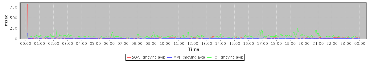 Host zm06.stanford.edu: Mailboxd: Response Time by Client Protocol