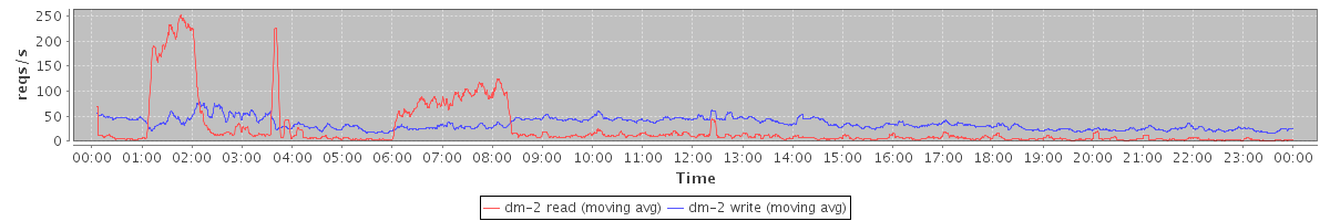 avg(dm-2 read) = 25.14 avg(dm-2 write) = 34.79