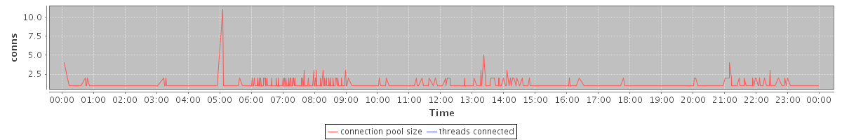 avg(connection pool size) = 0.45 avg(threads connected) = 0.00