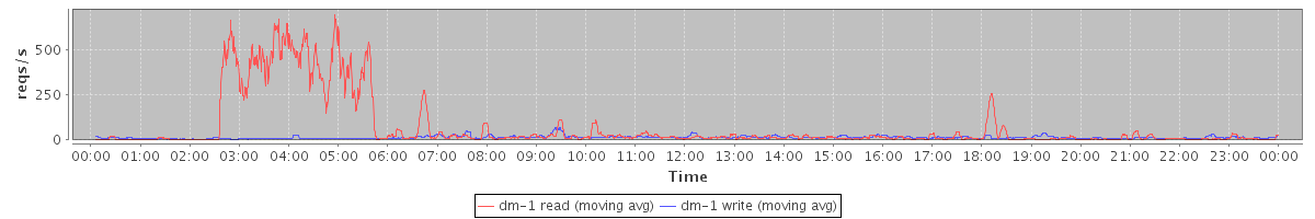 avg(dm-1 read) = 1011.69 avg(dm-1 write) = 137.31