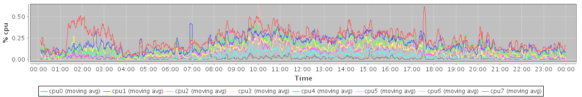 avg(cpu0) = 1.08 avg(cpu1) = 0.89 avg(cpu2) = 0.64 avg(cpu3) = 0.54 avg(cpu4) = 0.47 avg(cpu5) = 0.36 avg(cpu6) = 0.64 avg(cpu7) = 0.27