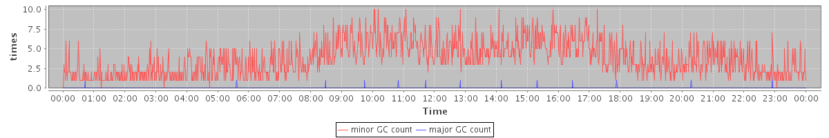 avg(minor GC count) = 3.79 avg(major GC count) = 0.01