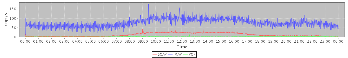 Host zm03.stanford.edu: Mailboxd: Request Rate by Client Protocol