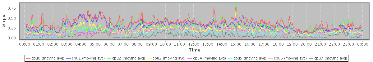avg(cpu0) = 0.17 avg(cpu1) = 0.18 avg(cpu2) = 0.09 avg(cpu3) = 0.11 avg(cpu4) = 0.07 avg(cpu5) = 0.07 avg(cpu6) = 0.05 avg(cpu7) = 0.05