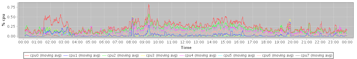 avg(cpu0) = 0.24 avg(cpu1) = 0.03 avg(cpu2) = 0.17 avg(cpu3) = 0.02 avg(cpu4) = 0.14 avg(cpu5) = 0.01 avg(cpu6) = 0.06 avg(cpu7) = 0.00