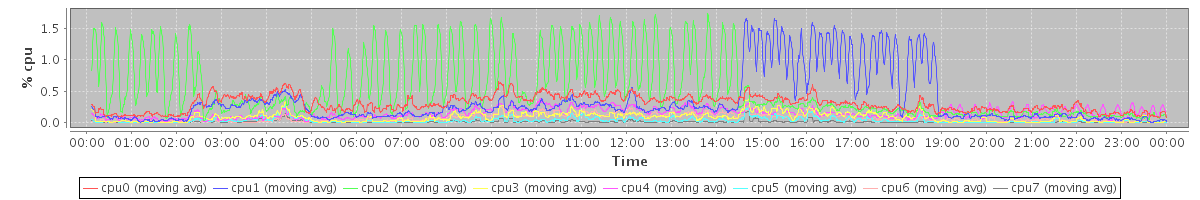 avg(cpu0) = 1.16 avg(cpu1) = 1.10 avg(cpu2) = 0.92 avg(cpu3) = 0.50 avg(cpu4) = 0.53 avg(cpu5) = 0.37 avg(cpu6) = 0.42 avg(cpu7) = 0.27