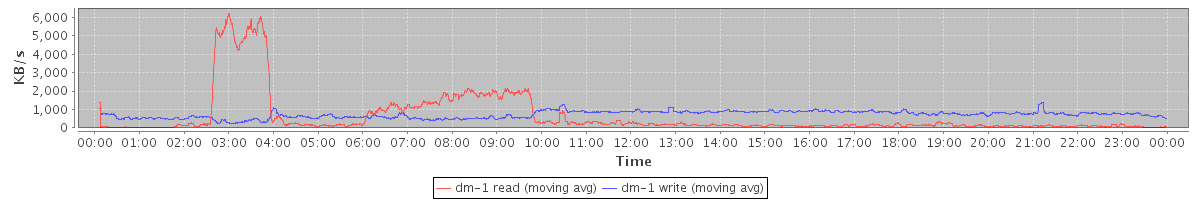 avg(dm-1 read) = 629.82 avg(dm-1 write) = 719.23