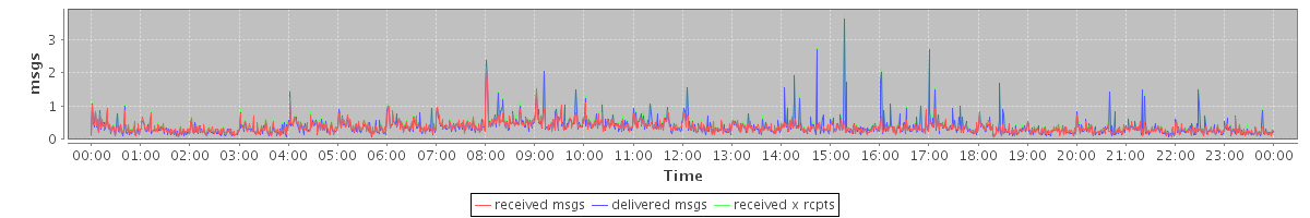 avg(received msgs) = 0.36 avg(delivered msgs) = 0.38 avg(received x rcpts) = 0.43