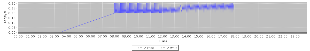 avg(dm-1 read) = 0.03 avg(dm-1 write) = 18.72